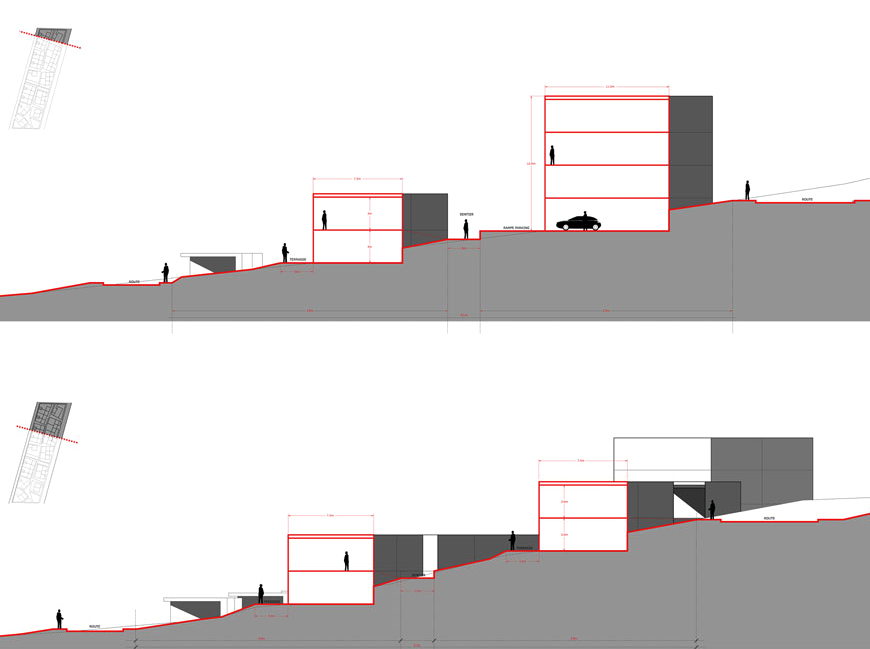 Une vision urbanistique a été élaboré pour deux parcelles de la Société Wallonne du Logement. Pour la parcelle nord, un ensemble composé de maisons jumelées et de petits blocs d’appartements regroupe 44 logements. La parcelle sud comprend quant à elle deux corps bâtis de 4 maisons chacun. L’urbanisation des lieux se veut la préfiguration du développement futur de la zone dans son entièreté et intègre des considérations de durabilité.